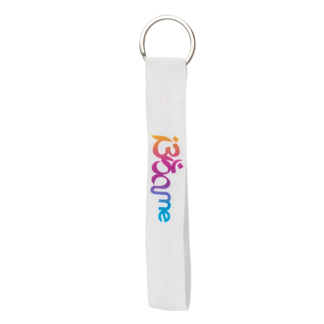 - El llavero Happiness cerrado muestra el logo inspirador de IBIZAME en ambos lados.